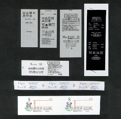 株式会社サンコーではプリントネーム(洗濯絵表示・ケアラベル)を小ロットから製作いたします。